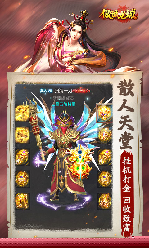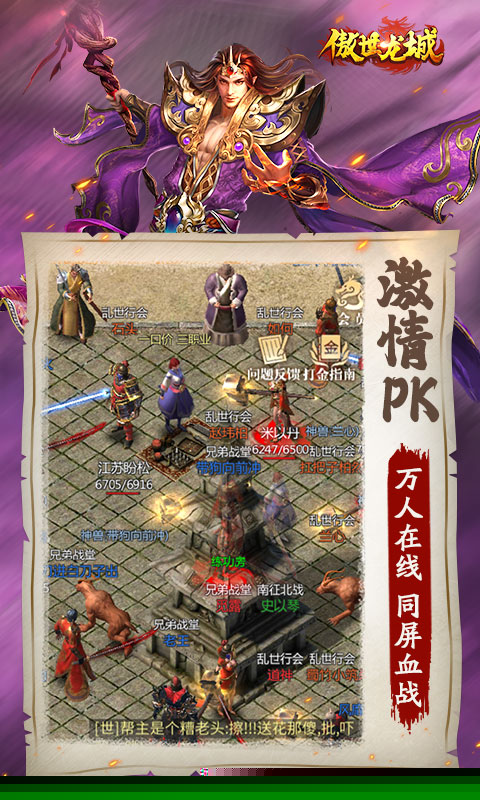 傲世龙城是一款基于经典传奇IP打造的大型多人在线角色扮演游戏,以恢弘的东方玄幻世界为背景,继承了战法道三职业的核心设定,并运用先进技术对画面与玩法进行全面革新。游戏为构建一个自由探索、热血激战、策略成长与社交并重的虚拟江湖,通过丰富的PVE副本、高强度的PVP对抗以及开放的经济系统,营造出极具沉浸感和持续吸引力的冒险体验。