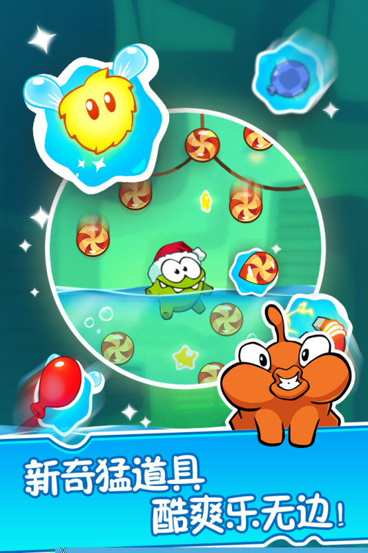 核心交互围绕切割连接糖果的绳索展开。需观察场景布局,分析糖果受重力与摆动力影响后的运动路径。操作层面,仅需在屏幕绳索处滑动即可完成切割,但时机与顺序的选择至关重要。过早或过晚行动都可能导致糖果偏离预定轨道或无法收集星星。