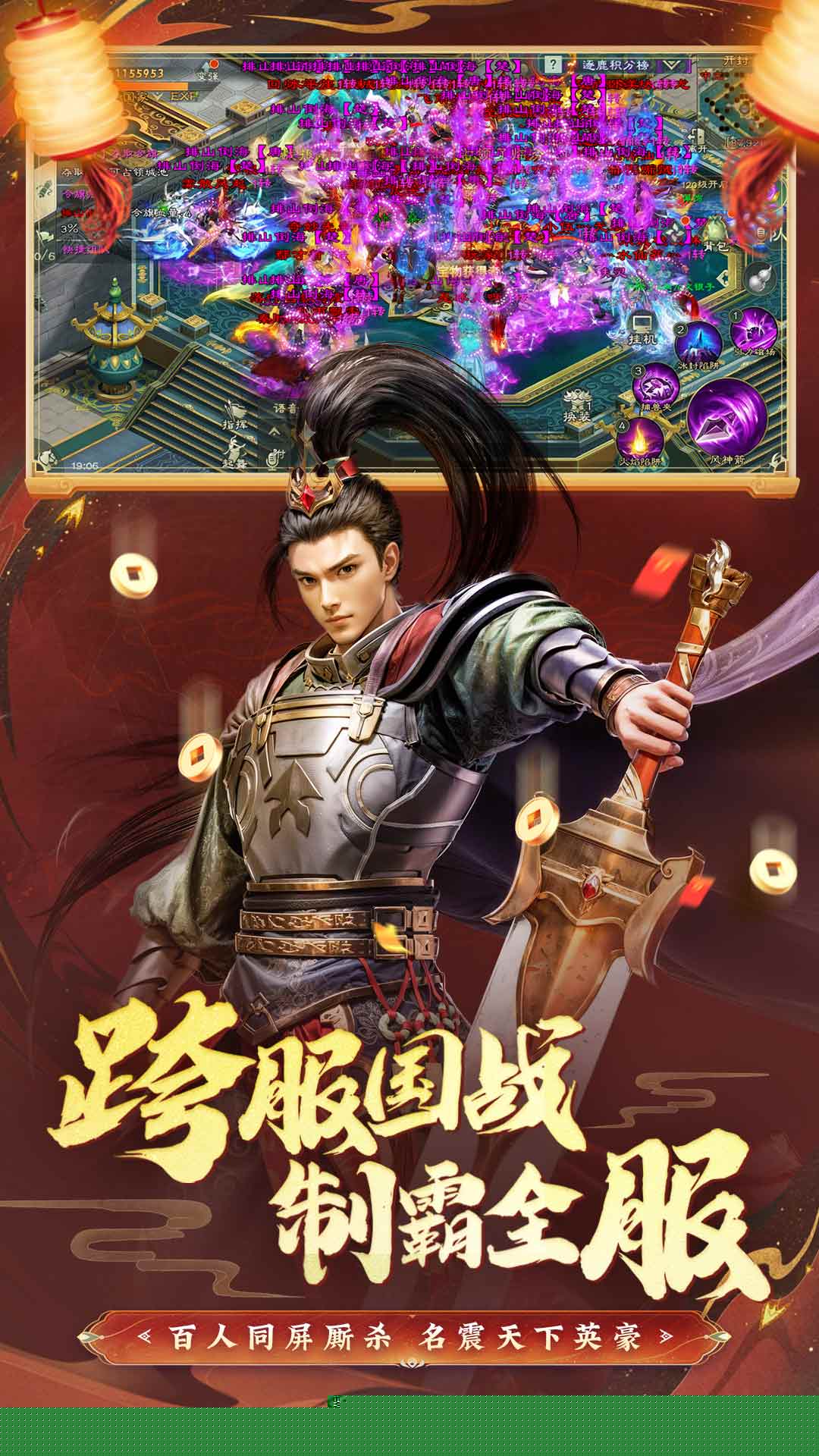 在攻守双方激烈的对拼交火中,大将军王的血量会一丝丝消耗,如果他撑到了国战最后一刻仍未倒下,守方就将获得大量国家资金;如果大将军王也被攻方打倒,攻方就将按比例掠夺守方的国家资源!