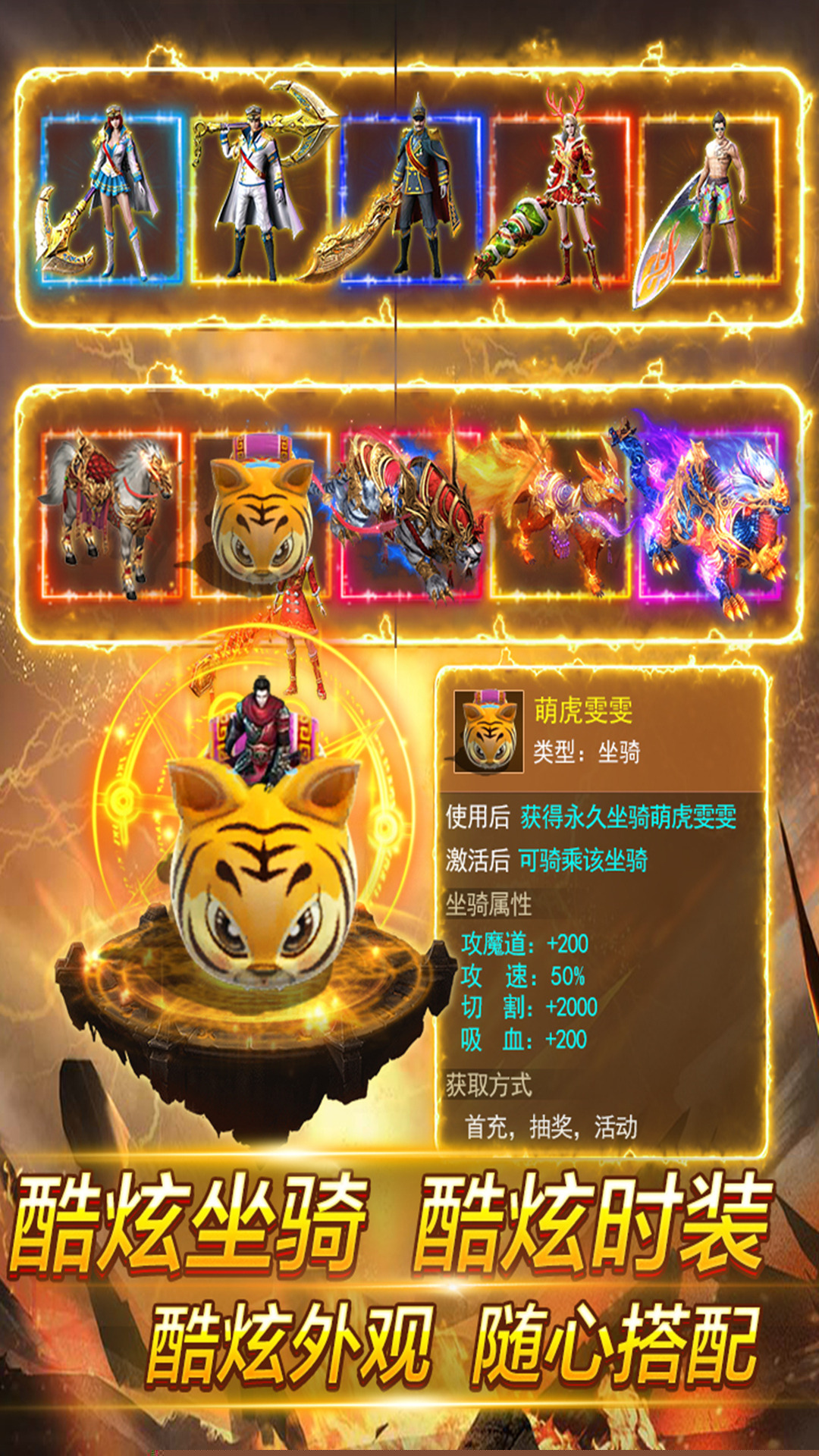 在保留复古画面基调上,为技能、极品掉落、高级坐骑翅膀赋予华丽动态特效,营造强烈的视觉反馈与成就感。