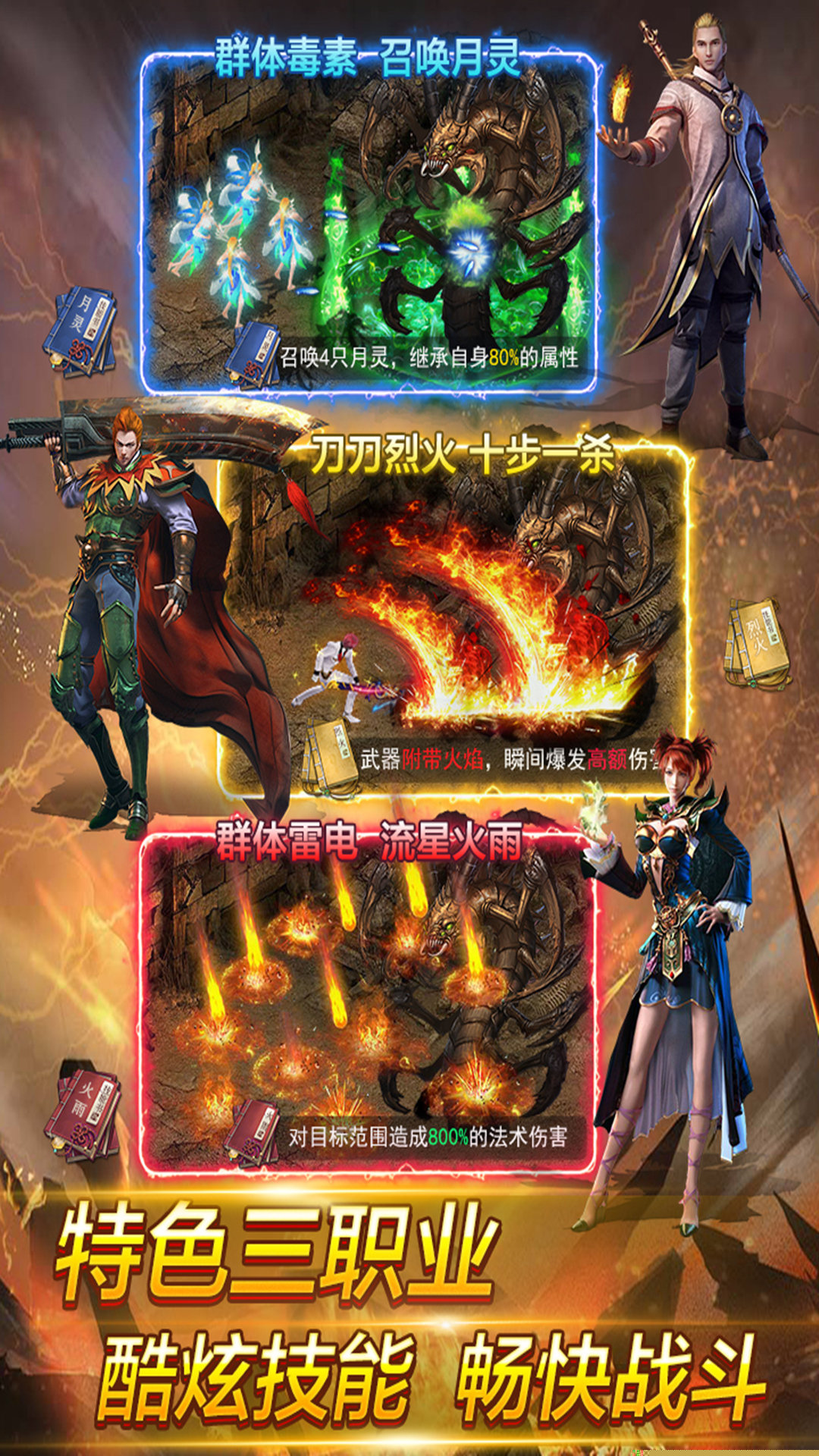 战士、法师、道士职业设定完美传承,技能树与战斗配合策略经久不衰,满足不同操作偏好的深度需求。