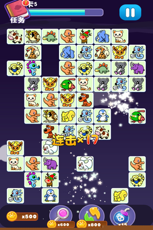 核心玩法围绕连接消除展开。屏幕上会布满印有不同宠物头像的方块,需要观察全局,寻找两个相同的图案们之间的连接路径转折不超过两次,即可用手指划过将其消除。成功消除后,上方方块会下落填充空位,可能产生新的连锁消除机会。每一关卡都会设定明确目标,在限定步数内消除指定数量的某种宠物,或是清除所有被锁链、冰块覆盖的特殊障碍方块。
