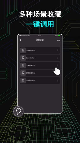 在单个设备的控制面板中调整好色温、色彩及动态模式后,点击界面上的收藏(通常为星形)图标,为当前设置命名并保存,之后便可在我的场景中随时调用。