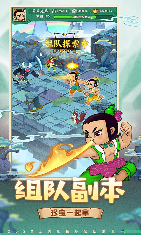葫芦兄弟七子降妖是一款由上海美术电影制片厂正版授权,以经典剪纸动画葫芦兄弟为蓝本精心打造的角色扮演手游。作品深度还原了原著动画的经典情节与人物形象,将七兄弟各具特色的神通与冒险故事融入策略战斗与角色养成之中,为呈现一个充满童年回忆与策略挑战的奇幻世界。