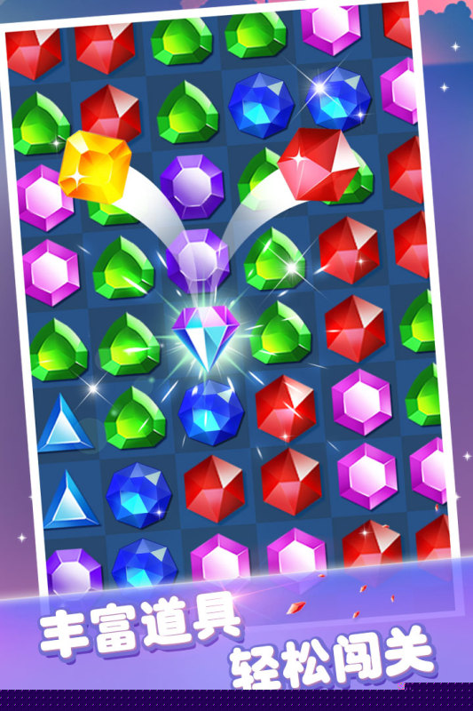 宝石光影效果绚丽,界面色彩明快,营造出愉悦的视觉氛围。