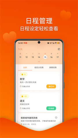 集成日历视图功能,所有任务一目了然,并可设置温馨提醒。帮助孩子从小建立时间规划意识,让探索学习规律化、习惯化。