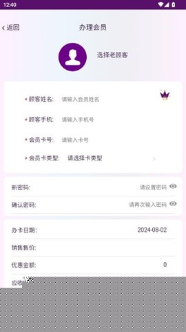 在客户管理界面选择对应客户,进入会员开卡选项,填写必要信息并选择卡类型与初始充值金额,系统将自动生成电子会员卡,客户可通过手机号进行身份验证与消费。
