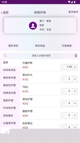 允许将单项服务自由搭配,创建定制化的疗程套餐或促销组合,满足多样化的营销策略需求,并简化套餐销售与核销流程。