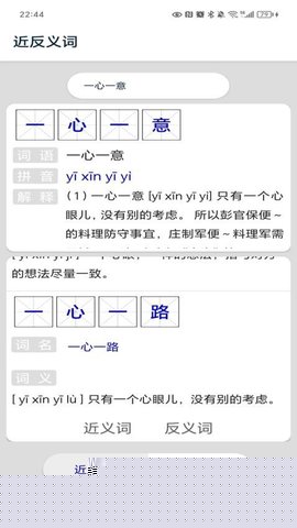 近义词是一款专为中文学习者设计的词汇查询与学习软件,集成了近义词、反义词查询、汉字知识讲解及视频学习等功能。通过简洁的界面和强大的本地词库,用户能够快速获取词语的关联词汇及详细释义,深入理解词汇的准确用法与语境差异,内容覆盖日常用语、文学词汇及专业术语,适合学生、教师、写作爱好者及语言研究者使用,助力提升语言表达能力和文化素养。