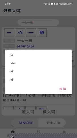 在软件主界面的搜索框中,直接输入目标汉字词语或其完整的汉语拼音,系统将即时显示该词语的近义词、反义词列表及其详细解释。