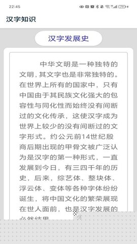 设有专门的汉字知识模块,系统讲解常用汉字的字形演变、造字法(如象形、指事、会意、形声)及其文化内涵。此功能解决学习者对汉字仅识其形、不解其义的普遍问题,深化对中文文字体系的理解。