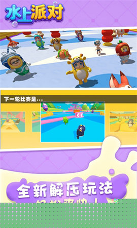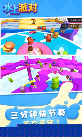 水上派对是一款充满欢乐与竞技氛围的多人休闲闯关游戏,将扮演造型可爱的角色,在色彩缤纷的奇幻赛道上展开一场场妙趣横生的竞速对决。通过灵活的操作收集资源、克服障碍并与对手互动,最终目标是率先冲过终点,赢得丰厚奖励。其丰富的关卡设计和轻松的社交体验,为各年龄层用户带来了持续的娱乐享受。