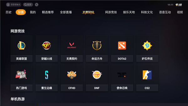 核心功能围绕直播观看展开。启动应用后,主页呈现推荐与分类两大入口。推荐页面动态展示算法筛选的热门及可能感兴趣的直播间;分类页面则按游戏、娱乐、科技等垂直频道系统排列,方便用户按图索骥。通过遥控器方向键与确认键可完成所有浏览、选择、进入直播间的操作。