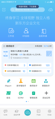 新东方云办公是一款由新东方教育科技集团自主研发的内部协同办公软件,整合教学、管理与日常行政流程,为集团员工构建一个统一、高效、安全的数字化工作环境。其核心是将分散的业务系统与工作场景深度融合,通过移动化与云端化的方式,支持员工随时随地处理审批、查阅信息、沟通协作并完成教学辅助任务,显著提升了组织内部运营效率与响应速度。