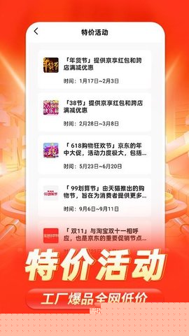 购物特价商城是一款专注于为消费者提供高性价比购物软件的移动应用,深度整合了全网主流电商平台的商品与优惠信息,通过智能算法为用户筛选并推荐优质、实惠的商品选择。其核心价值在于帮助用户简化比价流程,精准获取折扣券与促销活动情报,从而在日常生活购物中显著节省开支,实现精明消费。
