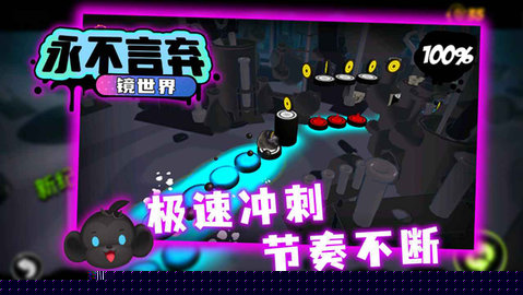 永不言弃镜世界是一款由匈牙利独立工作室Invictus Games开发的音乐节奏跑酷手游,延续了系列标志性的黑色幽默与高难度挑战。将操控一个名为小墨点的可爱角色,在充满动感电子音乐的3D镜面世界中,跟随节拍精准跳跃,穿越由激光、尖刺和移动平台构成的复杂障碍赛道,体验一场视听与反应速度的双重考验。