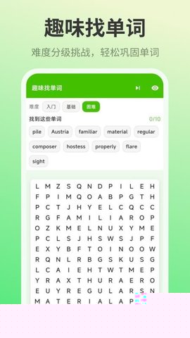 融合了卡片翻转、拼写挑战、听力辨析与趣味找词等多种练习模式,将枯燥的记忆过程转化为互动体验。
