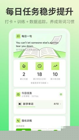 首次使用时,系统会引导用户设定每日学习目标与期望完成日期,随后自动生成包含新学与复习内容的每日任务,用户只需跟随完成即可。