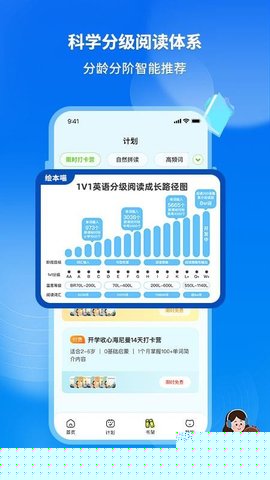 整合了超过万册正版授权绘本、经典童话、寓言故事以及同步学校课程的电子教材,形成庞大的分级阅读库。