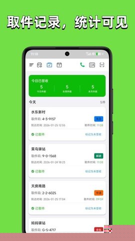 界面布局聚焦核心信息,从添加到签收的路径设计最短,减少不必要的操作步骤,让快递管理变得轻松无感。