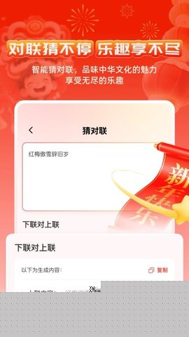 内置传统文化知识互动模块,通过给出上联或特定语境,引导用户猜测下联或完成对联,在趣味互动中普及对联知识,加深对传统文化规则的理解。
