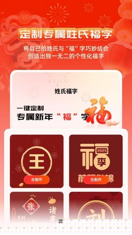 提供将用户姓氏与传统福字图案相结合的艺术设计功能。输入特定姓氏,即可生成融合该姓氏元素的独特福字,适用于春节张贴或电子分享,增强了祝福的专属感与仪式感。