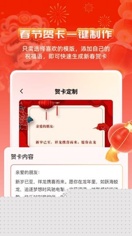集成贺卡制作工具,用户可选用生成的对联或自定义祝福语,结合软件提供的多种节日模板与装饰元素,设计并生成独具特色的电子贺卡,便于社交媒体分享与传递祝福。