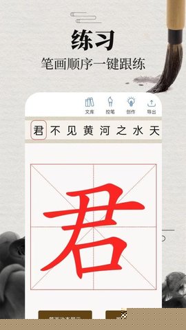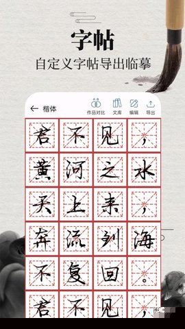 内置以唐诗、宋词、古文名篇为内容的专用字库,用户可直接选取整篇或部分文句进行创作练习,在提升书法技能的浸润于传统文化氛围之中。