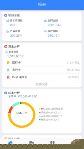 内置多维度数据分析模型,自动生成项目成本、进度、安全等各类报表,为管理决策提供直观、可靠的数据支撑。