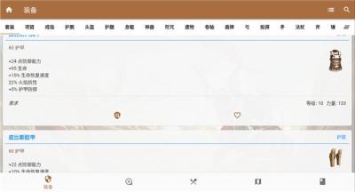 内置涵盖所有武器、防具及神器的完整数据库,详细列出每件物品的属性、掉落来源与套装效果,是构建终极角色的权威参考。