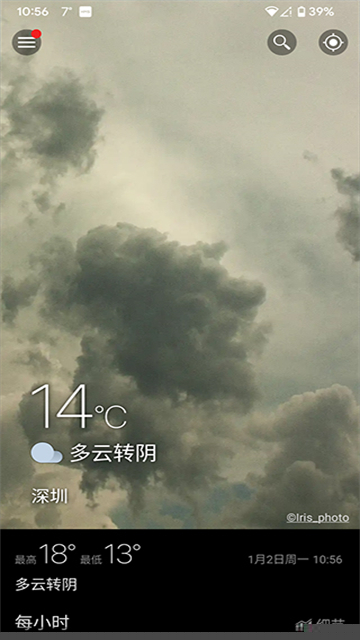 应用的核心特色在于集成了全球摄影师上传的实时天气照片,背景画面会根据用户当前位置的天气状况动态切换,将抽象的气象数据转化为生动的视觉呈现。