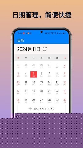 支持快速添加未来或过去的日期事件,包括名称、日期、备注等详细信息,并允许随时编辑或删除已创建条目。