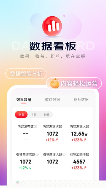 提供涵盖内容效果、直播收益、粉丝增长等多维度的实时数据分析,帮助运营者清晰洞察表现,为策略调整提供数据支撑。