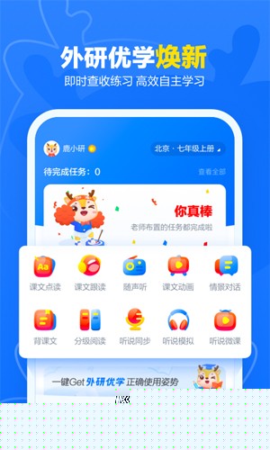 外研优学学生版是一款由北京外研在线数字科技有限公司研发的综合性英语学习应用,为中小学生提供与学校教材同步的数字化学习软件,整合了海量正版学习资源,通过智能化的学习路径规划和互动性强的功能模块,帮助学生在课堂之外构建系统化的英语知识体系,有效提升语言综合运用能力,培养自主学习习惯。