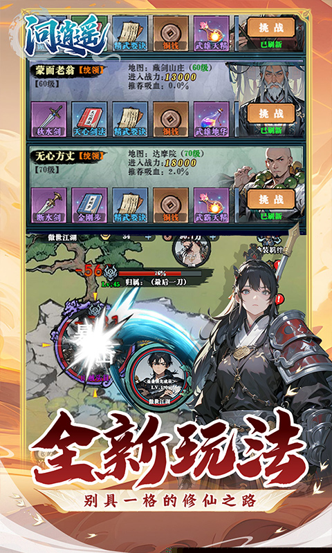 内置智能挂机系统,角色可自动进行打坐练功、秘境探索、资源收集等行为,让武侠成长与日常生活节奏无缝结合。