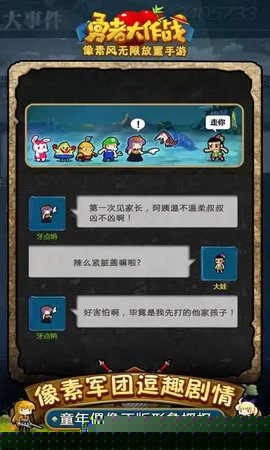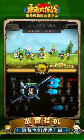 勇者大作战是一款融合了日系幻想美学与放置挂机机制的休闲角色扮演作品,构建了一个跨越次元壁的多元冒险世界。将招募并率领一支由历史名人、现代职业等趣味角色组成的勇者小队,在轻松惬意的氛围中体验自动战斗、资源收集、激烈国战与深度角色养成,兼顾了休闲放松与策略博弈的双重乐趣。