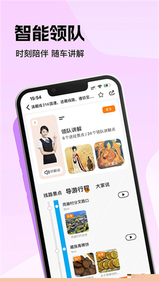 接入专业录制的真人语音讲解,在车辆接近预设景点时自动触发,详细介绍历史文化背景与自然景观特色。