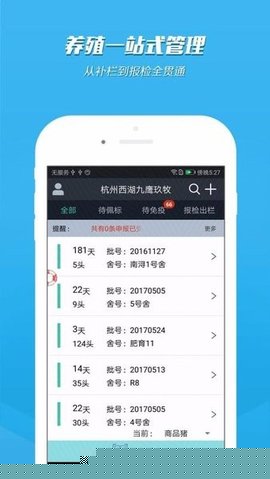 所有已提交的出栏报检申请均会在报检管理列表中显示。点击具体申请单,即可查看当前状态(如待受理、已受理、已完成)以及官方机构的任何反馈意见。