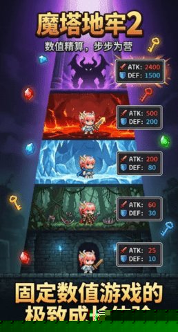 魔塔地牢2是一款融合了经典固定数值与随机生成元素的策略冒险作品,作为系列续作,其内容体量实现了质的飞跃。作品构建了一个充满策略深度的竖版地牢世界,将在随机组合的广阔地图中,选择各具特色的角色与职业,通过精密的数值计算与战术规划,挑战形态各异的敌人与强大的区域首领,体验每一次都截然不同的成长与征服之旅。