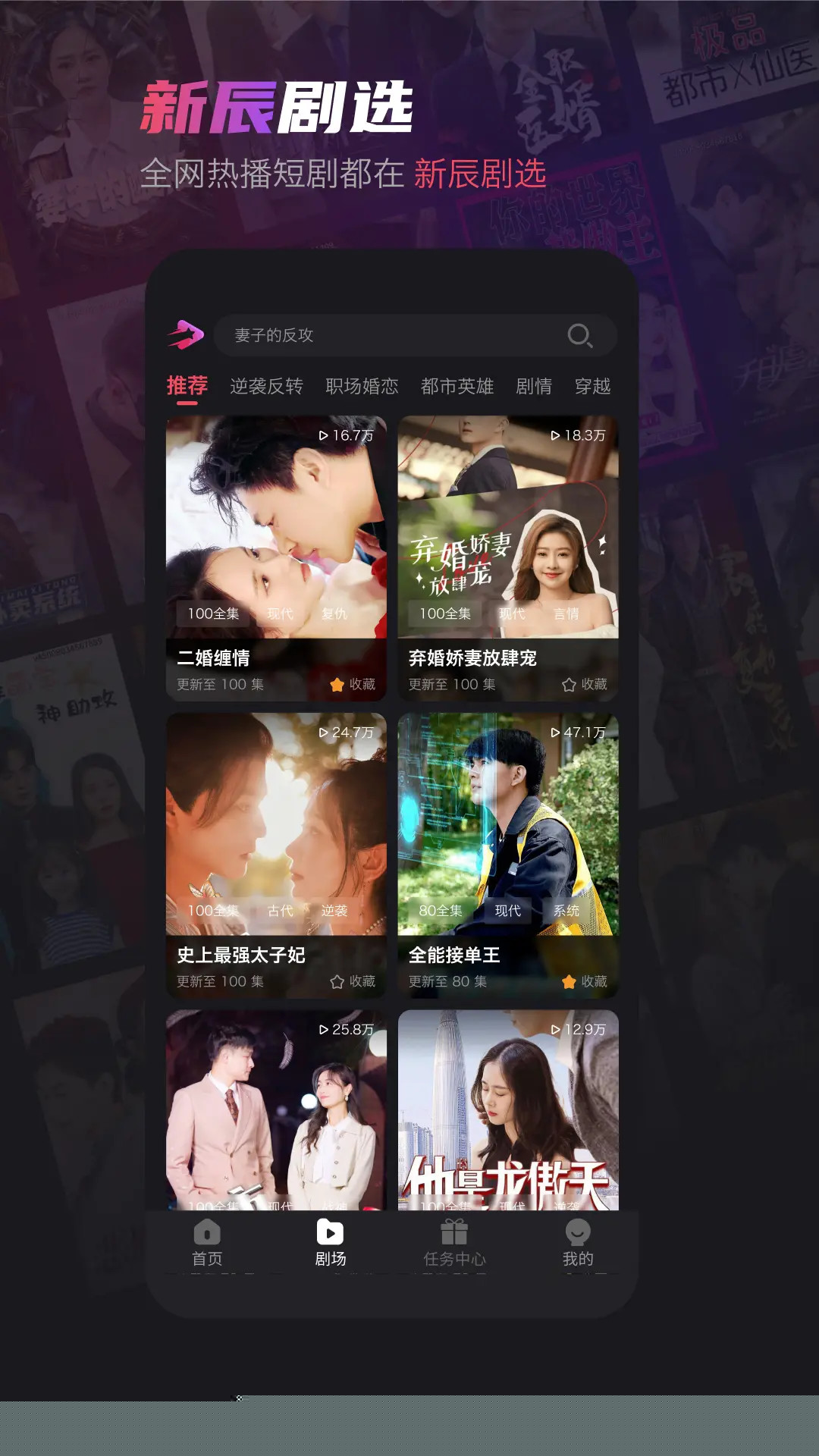 新辰剧选是一款专注于短剧内容聚合与分发的移动应用,通过智能推荐算法为用户提供个性化的视频观看体验。其核心在于整合海量优质短剧资源,涵盖都市情感、古装穿越、悬疑推理等多种题材,满足不同用户的娱乐需求。应用采用流畅的交互设计,支持离线缓存与多清晰度切换,确保在网络条件各异的环境下均能获得稳定的播放效果。通过持续的内容更新与社区互动功能,打造一个集观看、分享与发现于一体的短剧娱乐平台。