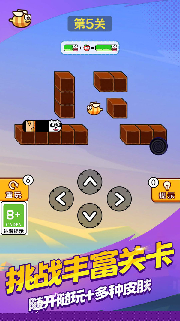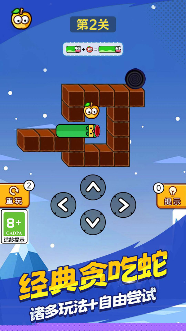 益智冒险闯关是一款融合了经典贪吃蛇机制与物理冒险元素的休闲益智作品,将操控一条灵动的蛇形生物,在充满几何美学的场景中穿梭,通过吞噬具有特殊效果的苹果来成长与进化,在规避碰撞与规划路径的紧张过程中,体验策略与反应的双重考验。
