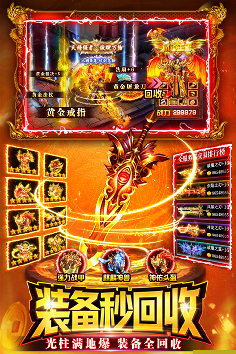 爆率全面开放,地图内任意怪物均有概率产出终极装备,装备光柱特效铺满屏幕,散人通过高效刷怪即可实现战力飞跃。