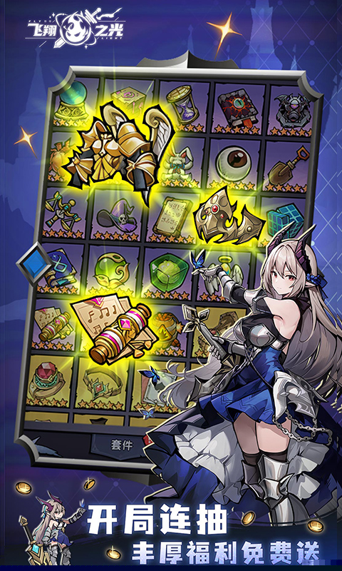 飞翔之光是一款轻松诙谐的角色扮演放置类手游。你将扮演向往光明的大魔王,准备洗号重练的大魔王,踏上不可思议的奇妙之旅。在充满奇幻色彩的世界里,通过放置挂机的方式积累资源,招募各具特色的伙伴,组建强大的冒险队伍,挑战层出不穷的关卡与敌人,体验一段颠覆传统、充满惊喜的魔王成长史。
