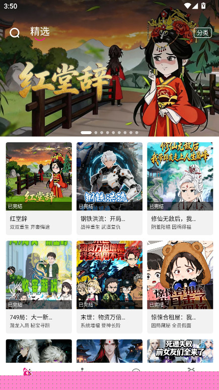 看看动漫是一款集实时互动、个性化陪伴与多场景适配于一体的数字动漫阅读平台,通过弹幕交流、心动标记、剧情竞猜等创新功能,打破传统观影模式,让用户深度融入内容。平台涵盖恋爱、奇幻、古风、异能、悬疑、热血等多元题材,每日更新海量精品漫剧,支持TV投屏、离线下载与后台播放,满足碎片化娱乐需求。