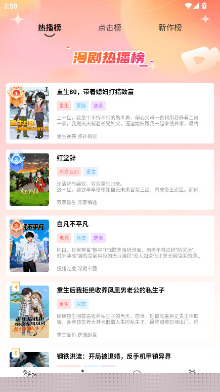 访问排行专区,细分热播榜、点击榜、新作榜等多个榜单,依据实时数据展示当前受欢迎的作品列表。