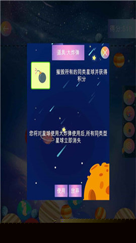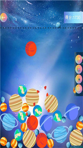 采用高品质的卡通美术风格,从微小的行星到炽热的恒星,每个合成阶段都有独特的造型与华丽的碰撞特效,视觉体验出色。
