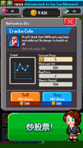 点点亿万富翁是一款融合了像素艺术风格与商业模拟元素的休闲手游,英文名称为Trillionre。其核心玩法围绕财富积累与资本运作展开,通过直观的交互参与公司管理、员工雇佣及虚拟股票交易,在轻松愉快的氛围中体验从白手起家到建立商业帝国的完整历程。画面细节丰富,角色设计生动,为构建了一个充满趣味与挑战的虚拟经济世界。