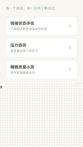 内置专业的压力水平测试与情绪状态评估量表。用户通过完成一系列标准化问题,可以获得量化的心理状态反馈,为自我调节提供科学参考依据。