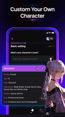提供从外貌特征到内在性格的全面自定义选项,用户可自由组合发型、服饰、声线及背景故事,打造完全符合个人想象的专属虚拟形象。