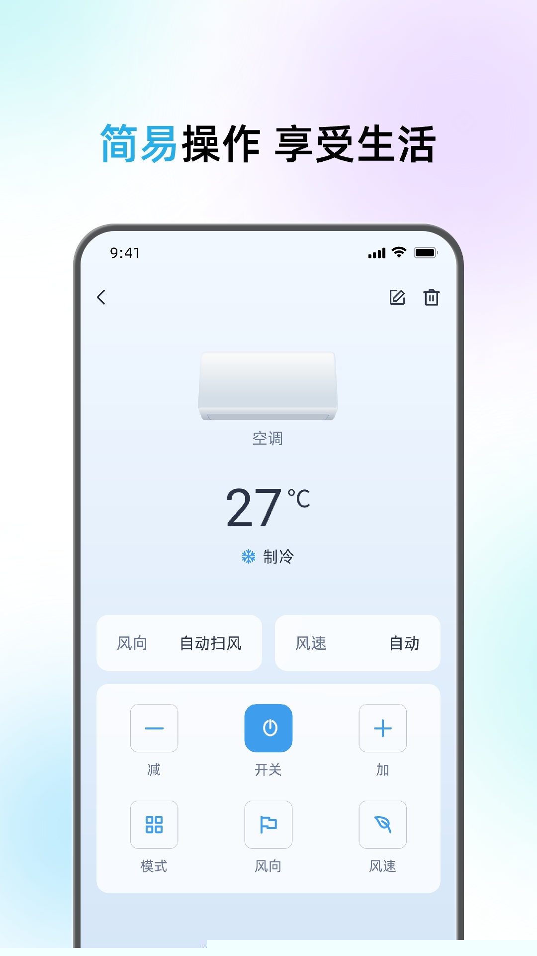 针对空调设备,提供精确到摄氏度的温度设定及多档风速调节,部分型号支持风向摆动控制,还原完整空调操作体验。